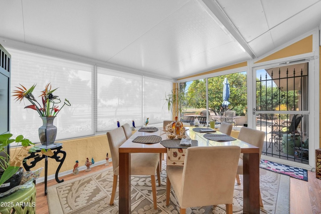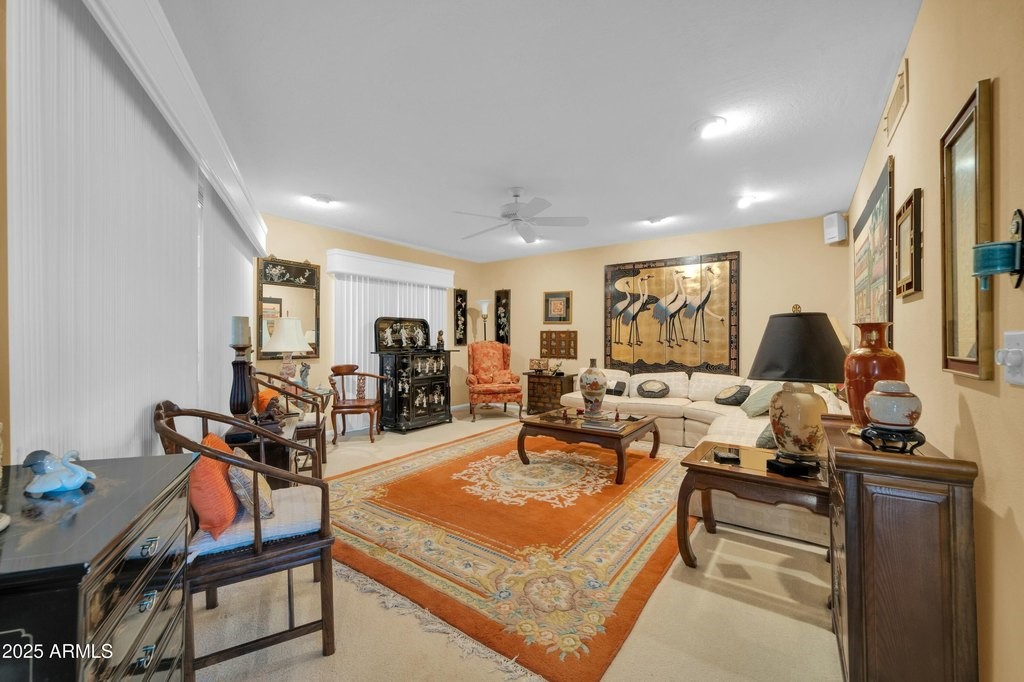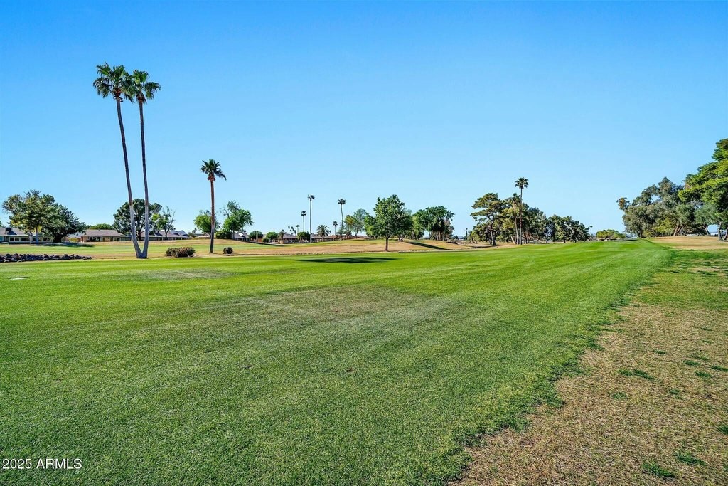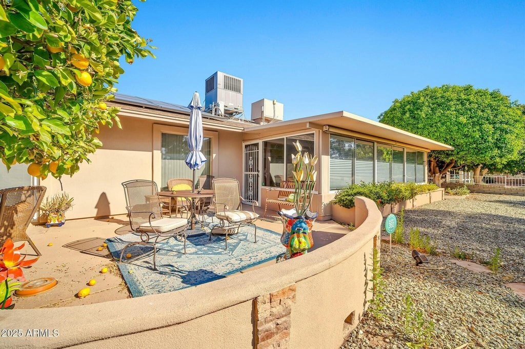 This is a fabulous home with lovely panoramic views of the golf course and a wonderful layout for the most gracious and comfortable living. In a wonderful community with amenities. Close to a rec center. The home has solar for savings in your electricity bill. (Solar is leased.) There is a huge front courtyard for fun and games, and a huge back patio (closed in to use in any weather).The guest bedroom has a door directly iinto the bathroom, making this 2 master bedrooms You must come and see this well loved home.