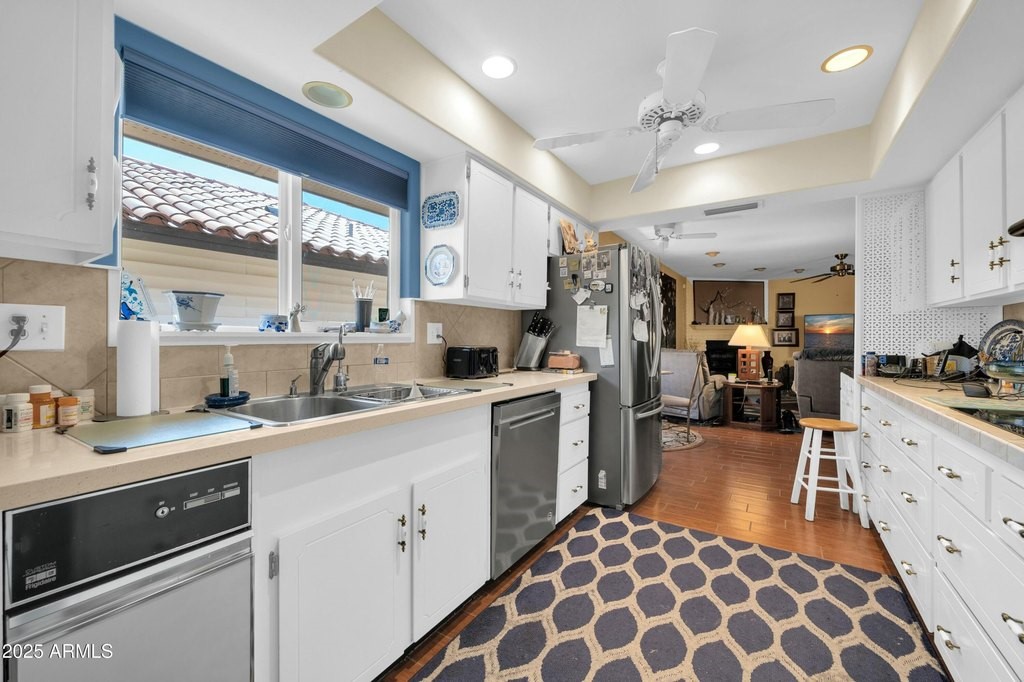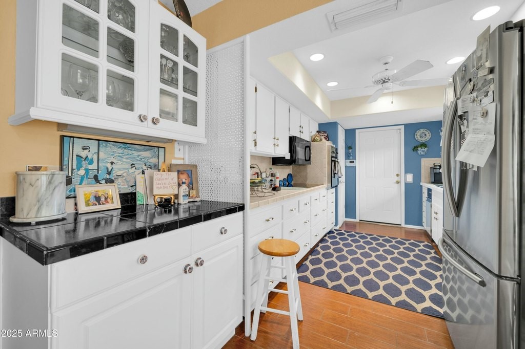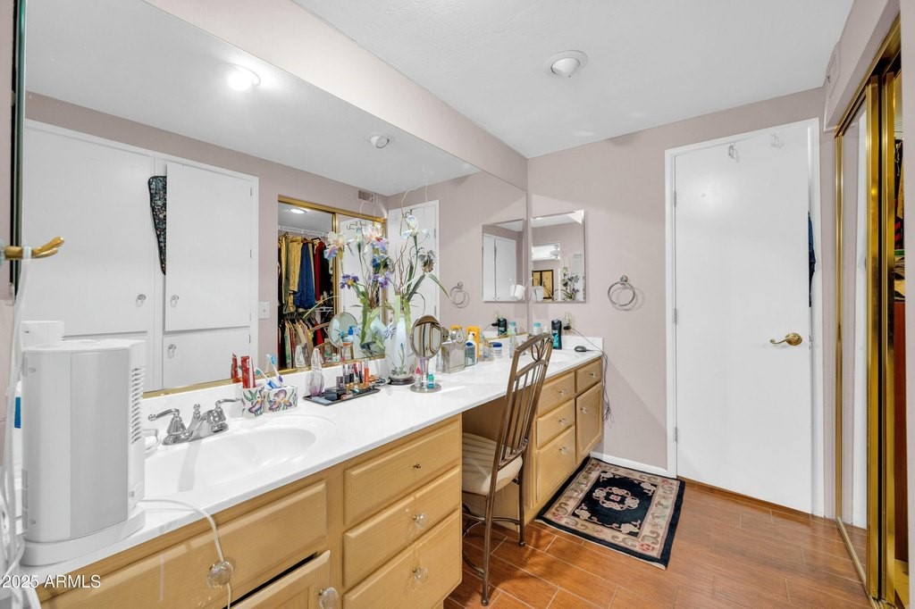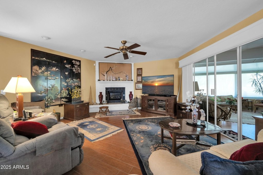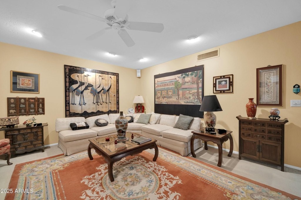 This is a fabulous home with lovely panoramic views of the golf course and a wonderful layout for the most gracious and comfortable living. In a wonderful community with amenities. Close to a rec center. The home has solar for savings in your electricity bill. (Solar is leased.) There is a huge front courtyard for fun and games, and a huge back patio (closed in to use in any weather).The guest bedroom has a door directly iinto the bathroom, making this 2 master bedrooms You must come and see this well loved home.
